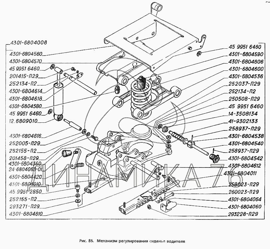 Перечень комплектующих от Механизм регулирования сиденья водителя на ГАЗ-3306