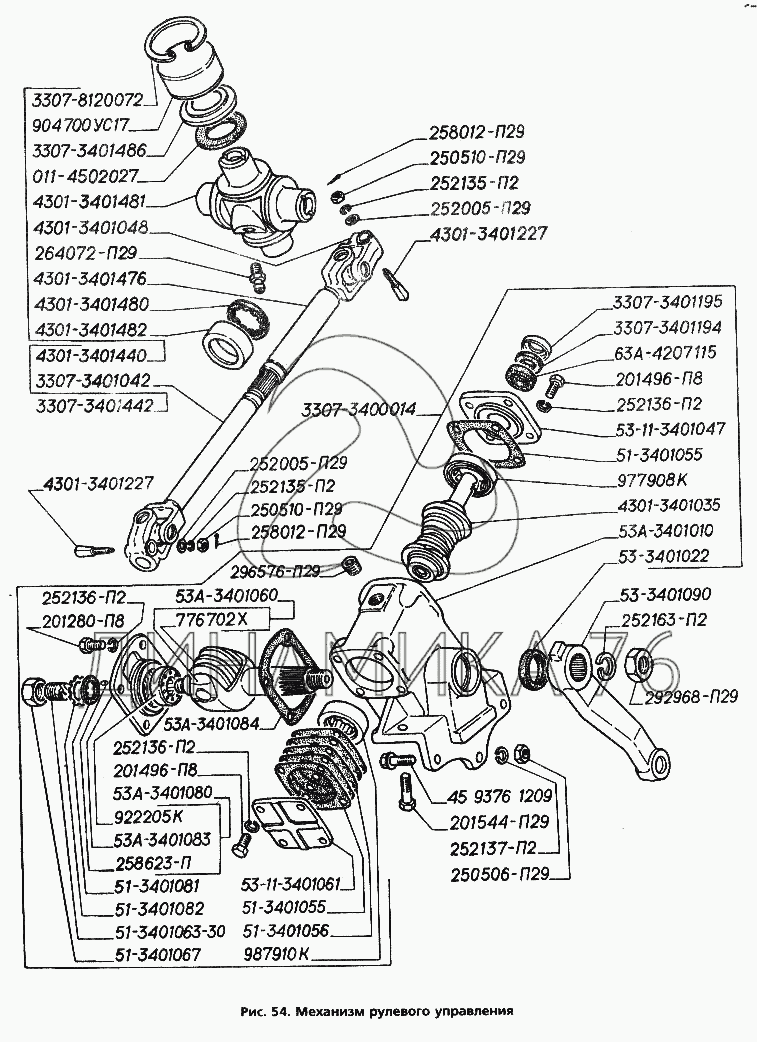Перечень комплектующих от Механизм рулевого управления на ГАЗ-3306