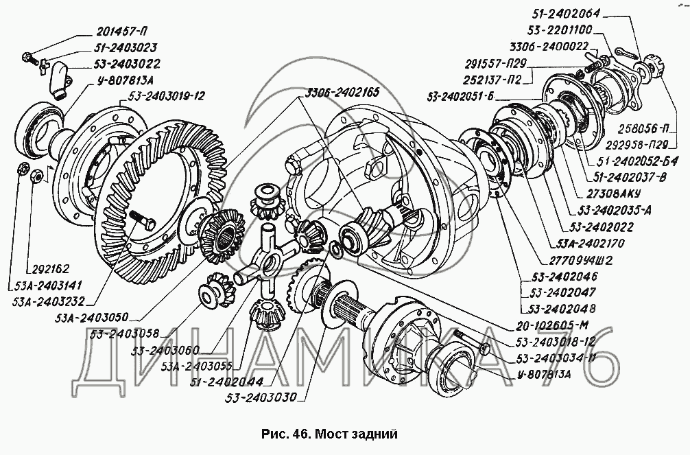 Перечень комплектующих от Мост задний на ГАЗ-3306