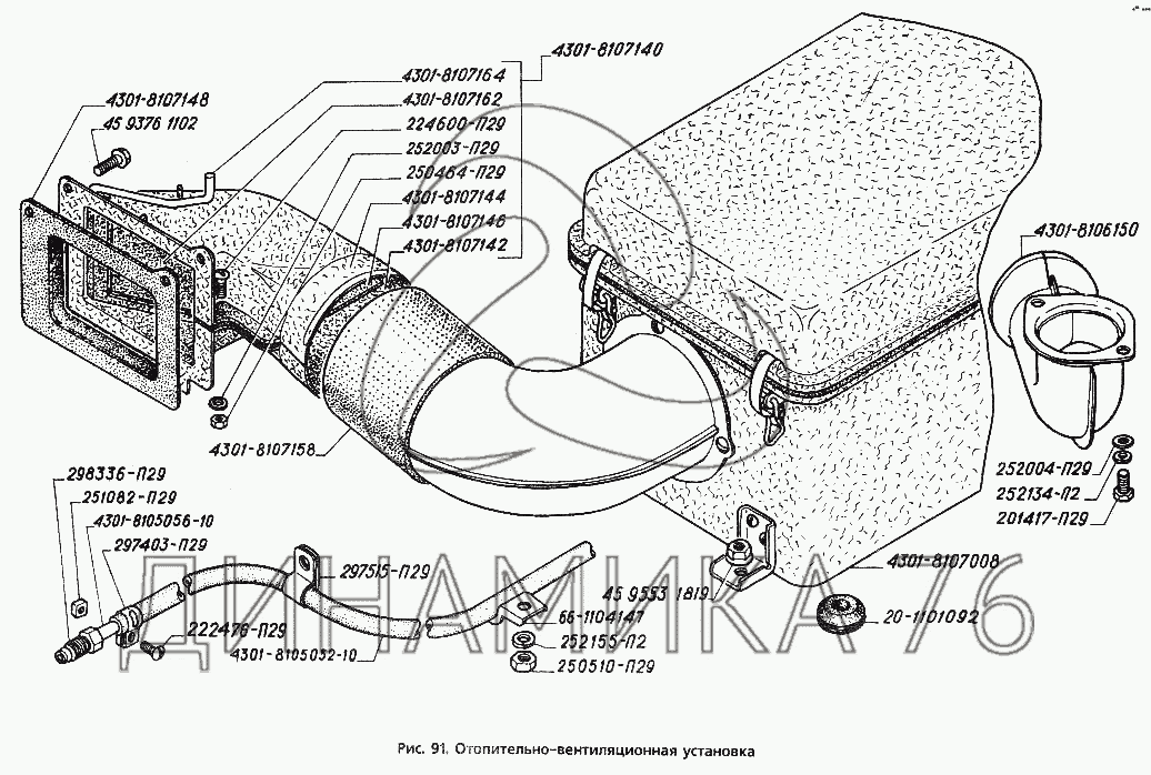 Перечень комплектующих от Отопительно-вентиляционная установка на ГАЗ-3306