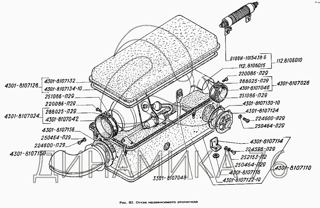 Перечень комплектующих от Отсек независимого отопителя на ГАЗ-3306