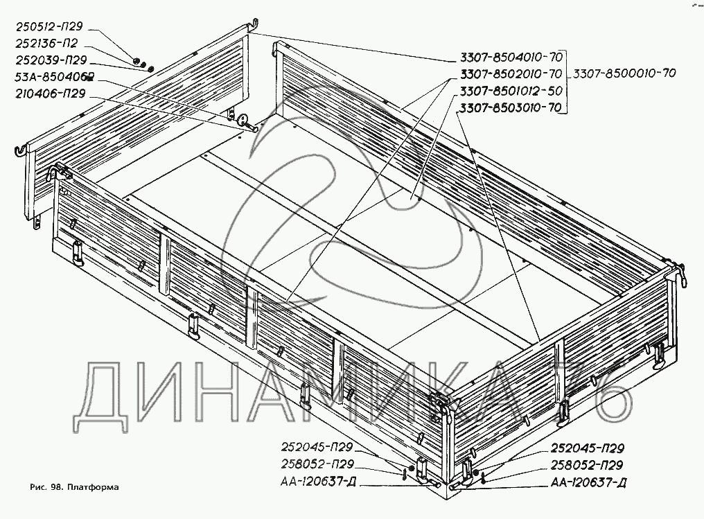 Перечень комплектующих от Платформа на ГАЗ-3306