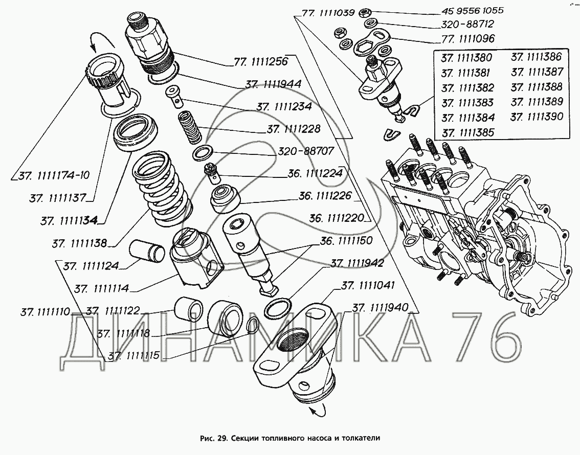 Секции топливного насоса и толкатели на ГАЗ-3306 (до 1994 г.)