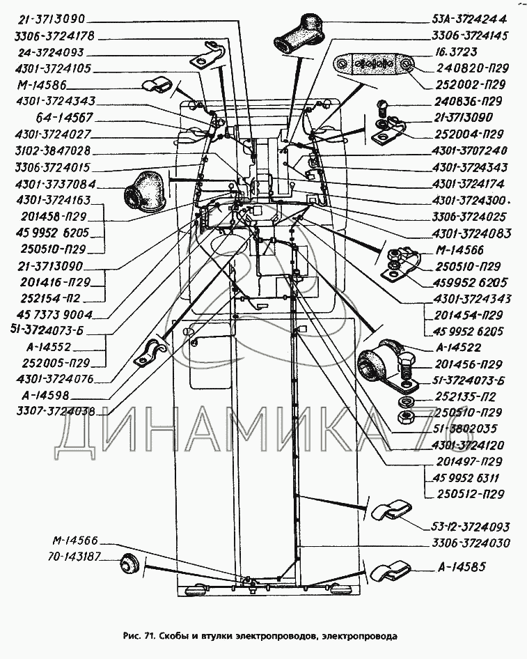 Скобы и втулки электропроводов, электропровода на ГАЗ-3306 (до 1994 г.)