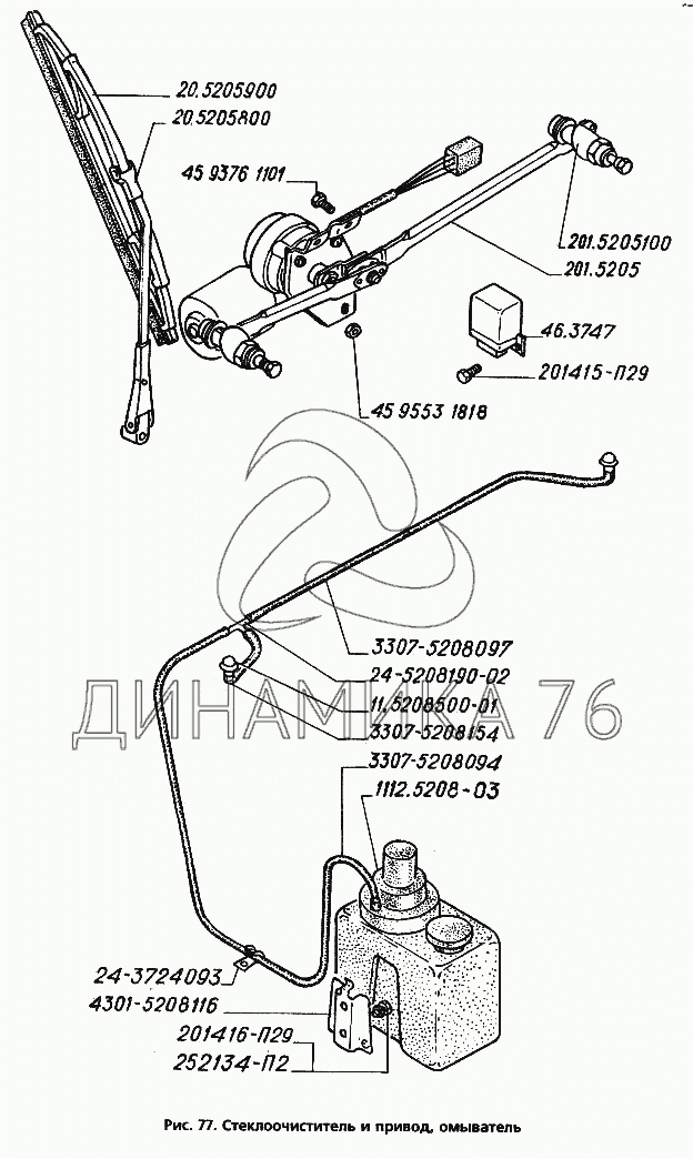 Перечень комплектующих от Стеклоочиститель и привод, омыватель на ГАЗ-3306