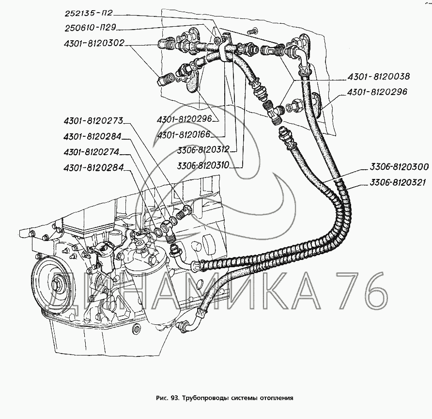 Трубопроводы системы отопления на ГАЗ-3306 (до 1994 г.)