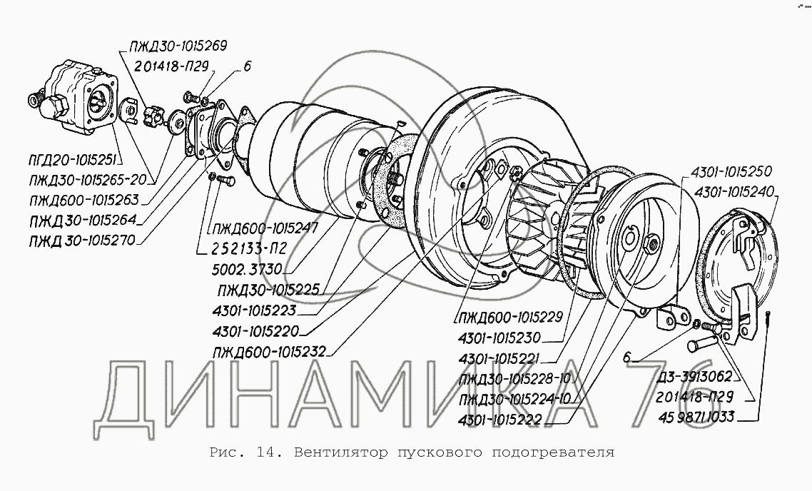 Перечень комплектующих от Вентилятор пускового подогревателя на ГАЗ-3306