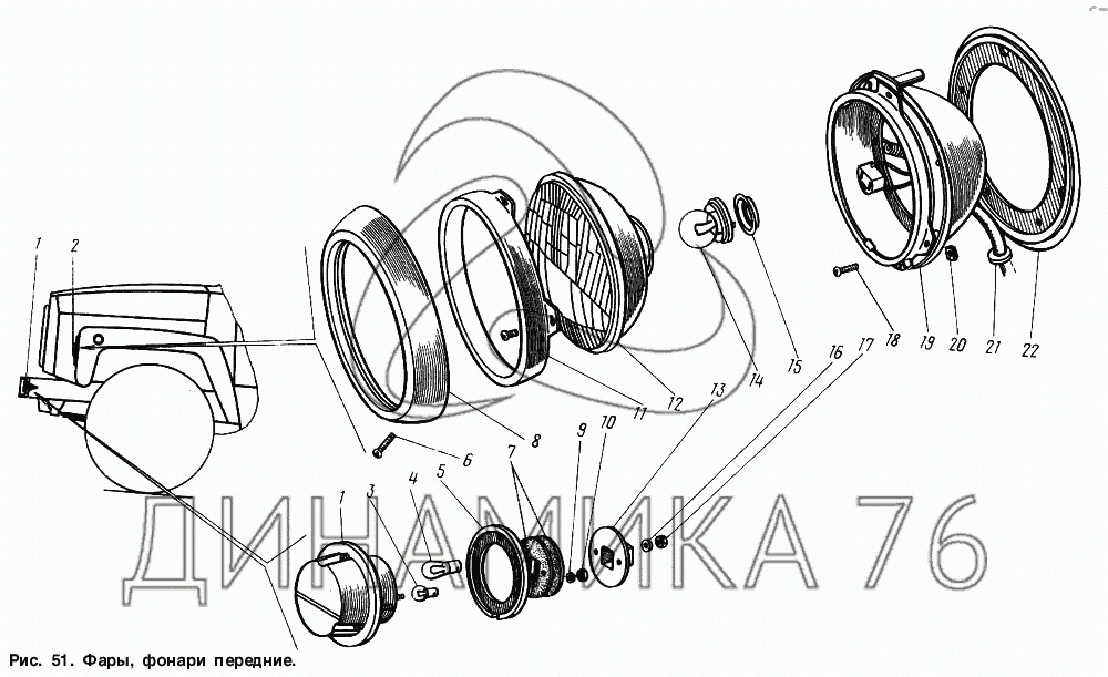 Схемы запчастей предназначены для справочных целей! Мы продаем не все запчасти от Фары, фонари передние на ГАЗ-3307, представленные в этом списке.