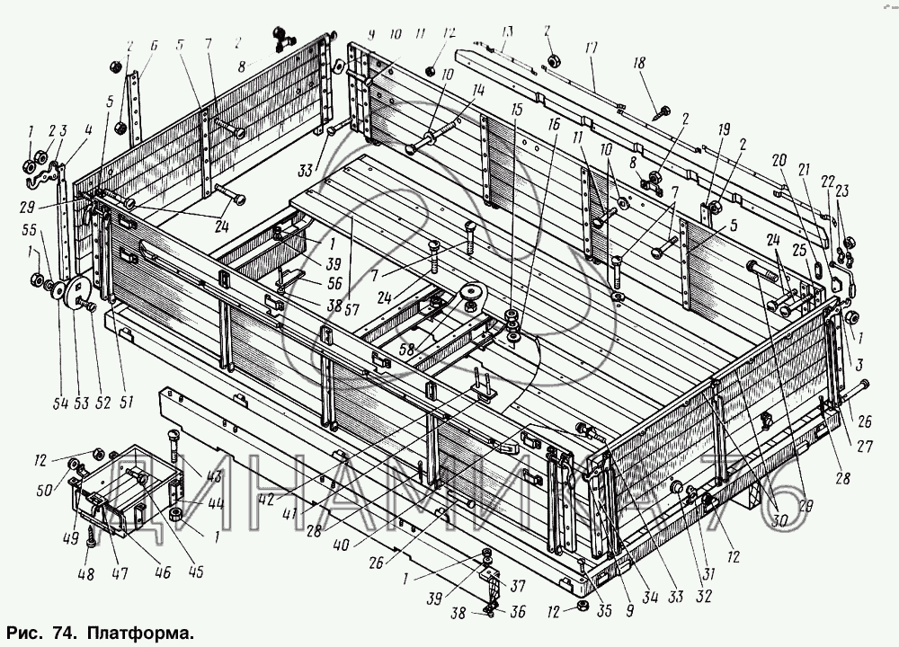 Схемы запчастей предназначены для справочных целей! Мы продаем не все запчасти от Платформа на ГАЗ-3307, представленные в этом списке.