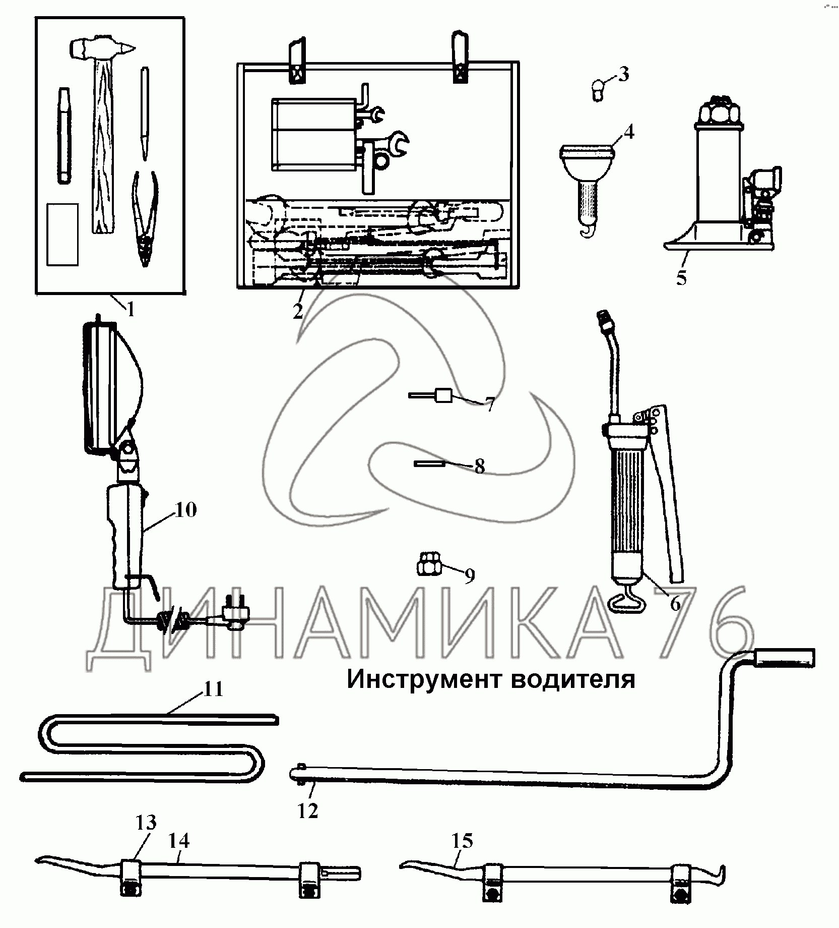 Перечень комплектующих от Инструмент водителя на ГАЗ-3308