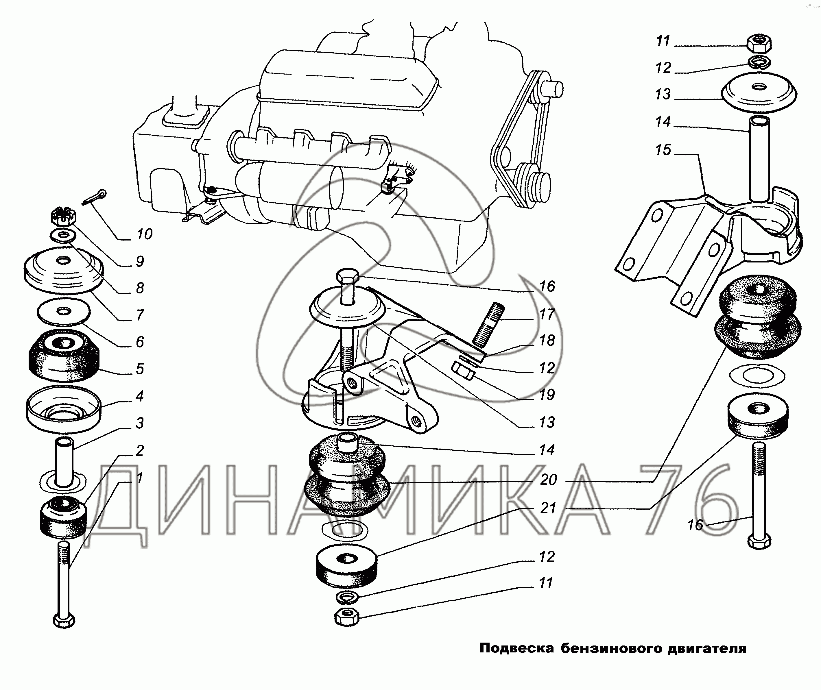 Подвеска бензинового двигателя — ГАЗ-3308: