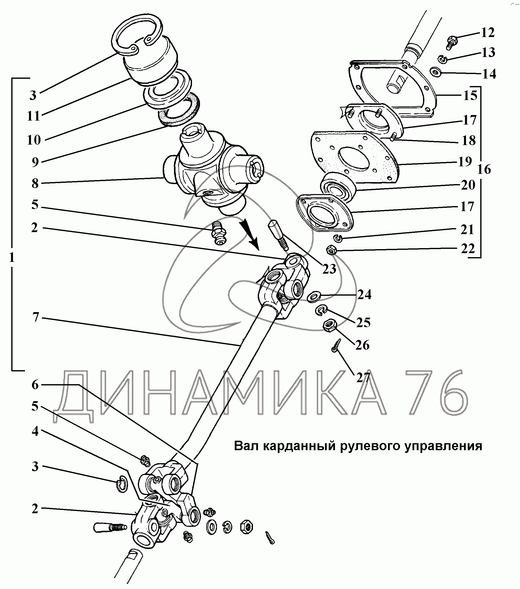 Перечень комплектующих от Вал карданный рулевого управления на ГАЗ-3308
