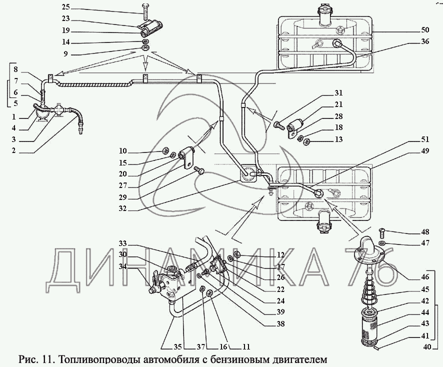 Перечень комплектующих от Топливопроводы автомобиля с бензиновым двигателем на ГАЗ-3308