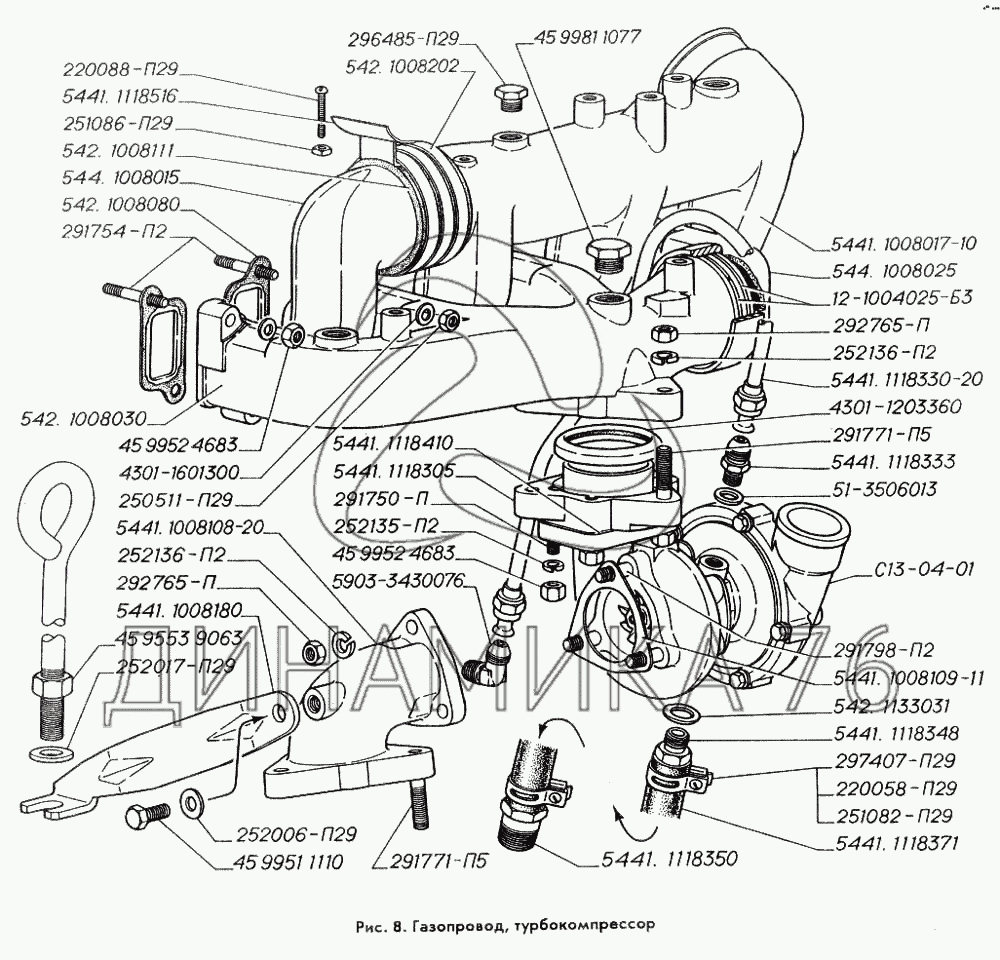 Перечень комплектующих от Газопровод, турбокомпрессор на ГАЗ-3309