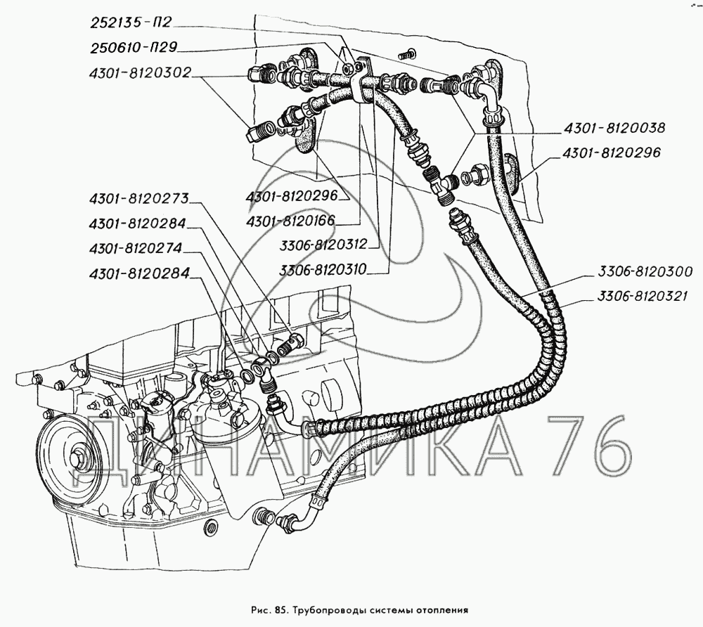 Перечень комплектующих от Трубопроводы системы отопления на ГАЗ-3309