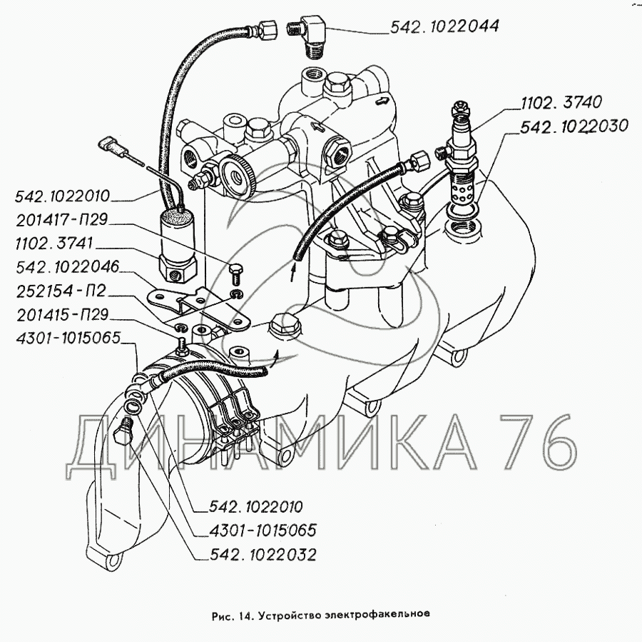 Перечень комплектующих от Устройство электрофакельное на ГАЗ-3309