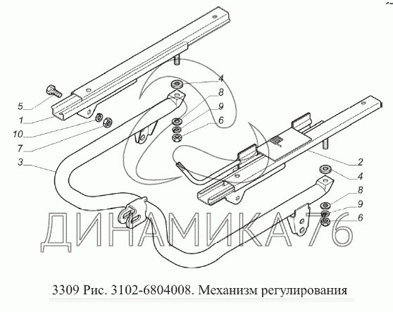 Перечень комплектующих от Механизм регулирования на ГАЗ-3309 (Евро 2)