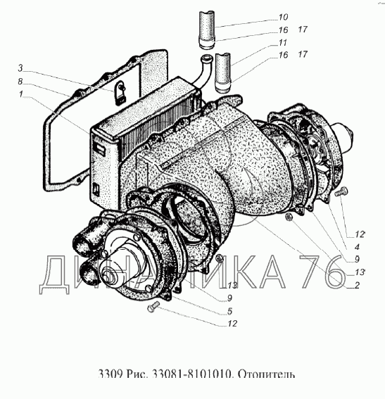 Перечень комплектующих от Отопитель на ГАЗ-3309 (Евро 2)