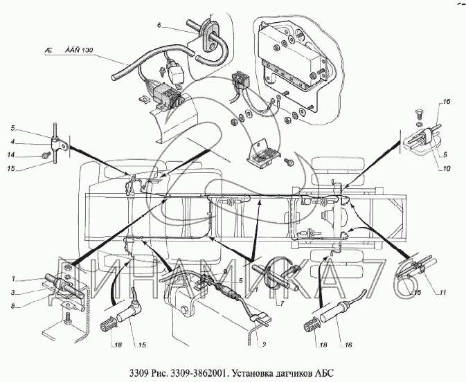 Перечень комплектующих от Установка датчиков АБС на ГАЗ-3309 (Евро 2)