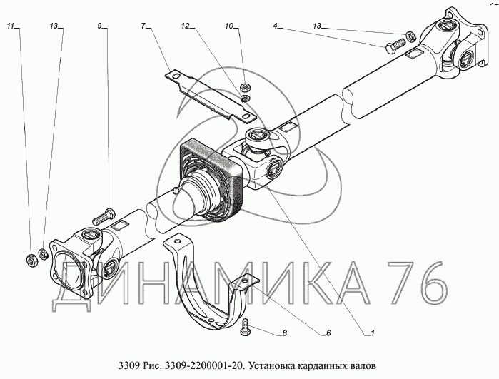 Перечень комплектующих от Установка карданных валов на ГАЗ-3309 (Евро 2)