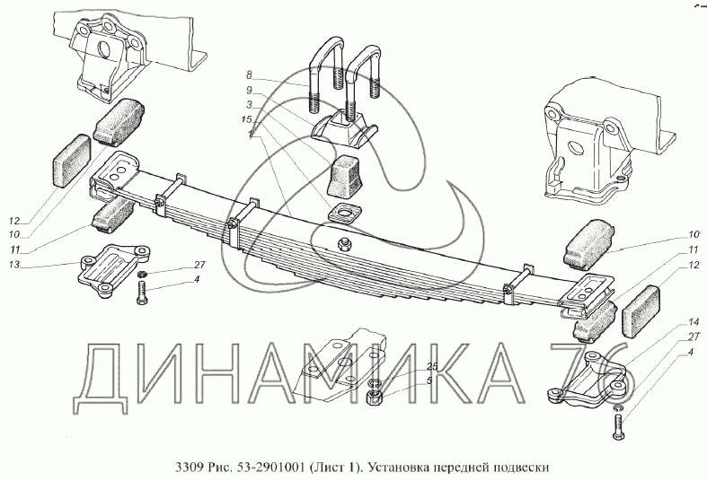 Перечень комплектующих от Установка передней подвески на ГАЗ-3309 (Евро 2)