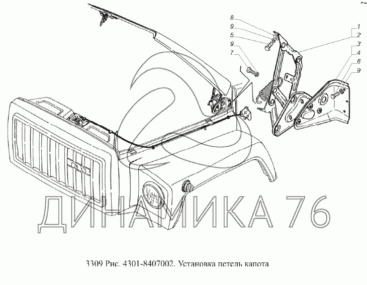 Установка петель капота — ГАЗ-3309 (Евро 2):