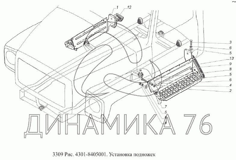 Перечень комплектующих от Установка подножек на ГАЗ-3309 (Евро 2)