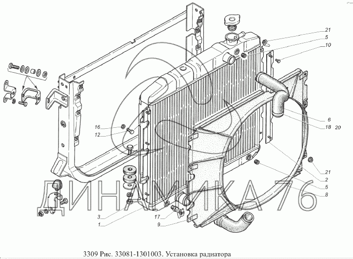 Перечень комплектующих от Установка радиатора на ГАЗ-3309 (Евро 2)