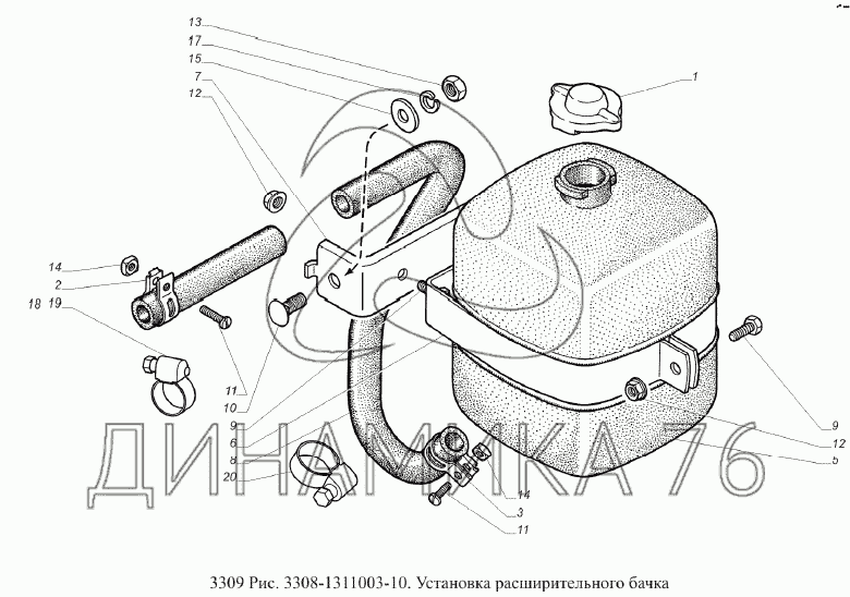 Перечень комплектующих от Установка расширительного бачка на ГАЗ-3309 (Евро 2)