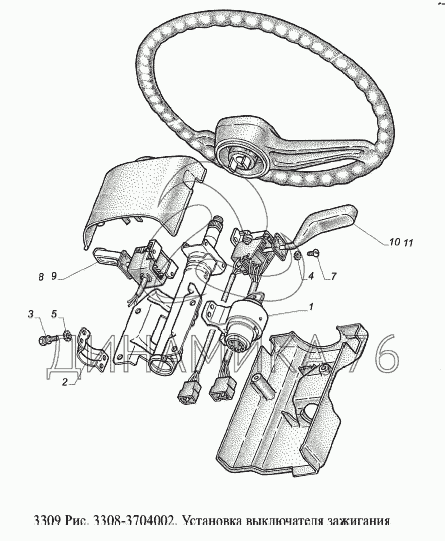 Схемы запчастей предназначены для справочных целей! Мы продаем не все запчасти от Установка выключателя зажигания на ГАЗ-3309 (Евро 2), представленные в этом списке.