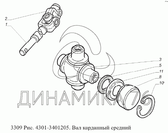 Перечень комплектующих от Вал карданный средний на ГАЗ-3309 (Евро 2)