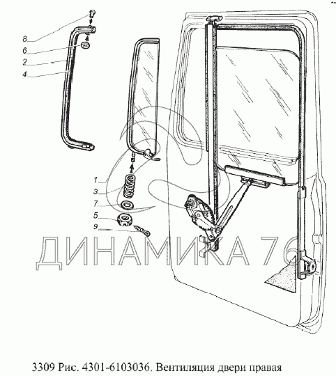 Перечень комплектующих от Вентиляция двери правая на ГАЗ-3309 (Евро 2)