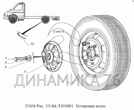 Перечень комплектующих от Установка колес на ГАЗ-33104 Валдай Евро 3