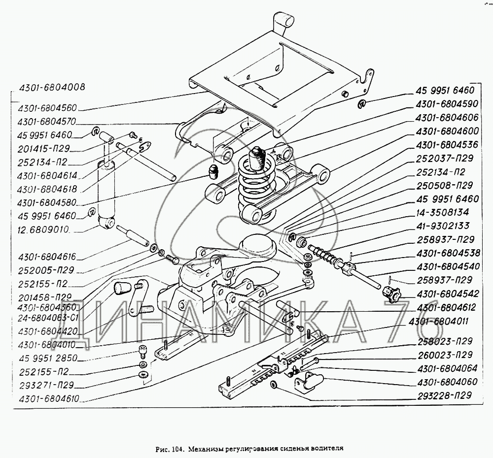 Перечень комплектующих от Механизм регулирования сиденья водителя на ГАЗ-4301
