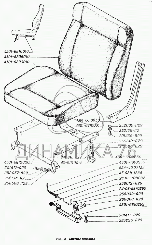 Перечень комплектующих от Сиденье переднее на ГАЗ-4301