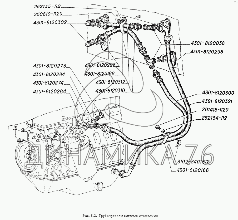 Перечень комплектующих от Трубопроводы системы отопления на ГАЗ-4301