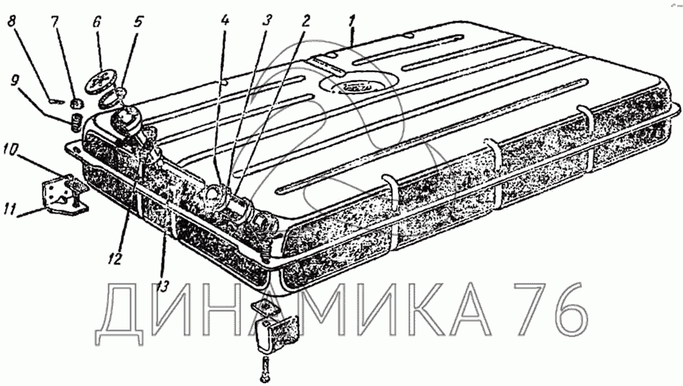Перечень комплектующих от Бензиновый бак на ГАЗ-51 (63, 63А)