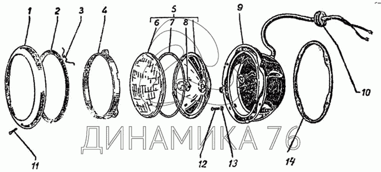 Перечень комплектующих от Фары на ГАЗ-51 (63, 63А)