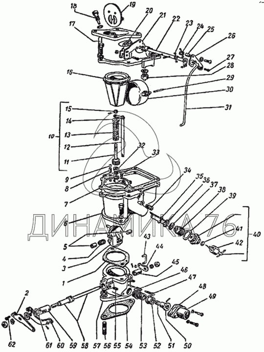 Схемы запчастей предназначены для справочных целей! Мы продаем не все запчасти от Карбюратор К22Г на ГАЗ-51 (63, 63А), представленные в этом списке.