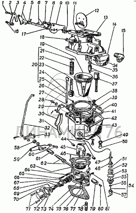 Перечень комплектующих от Карбюратор К49А на ГАЗ-51 (63, 63А)