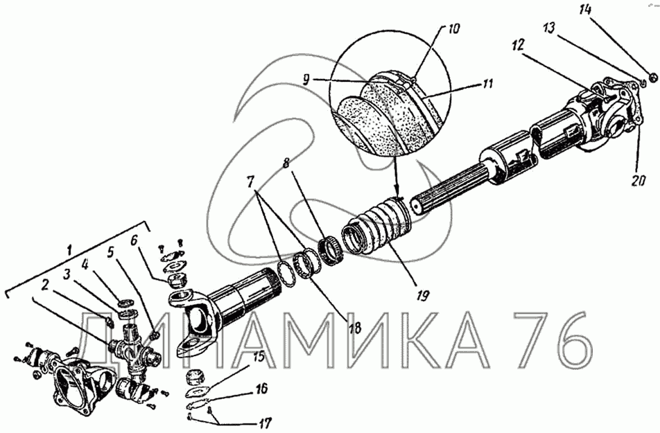 Перечень комплектующих от Карданный вал на ГАЗ-51 (63, 63А)