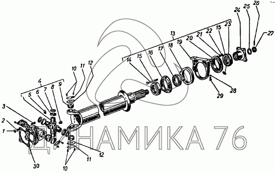 Перечень комплектующих от Промежуточный карданный вал на ГАЗ-51 (63, 63А)