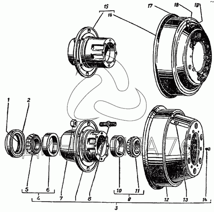 Перечень комплектующих от Ступицы задних колес на ГАЗ-51 (63, 63А)