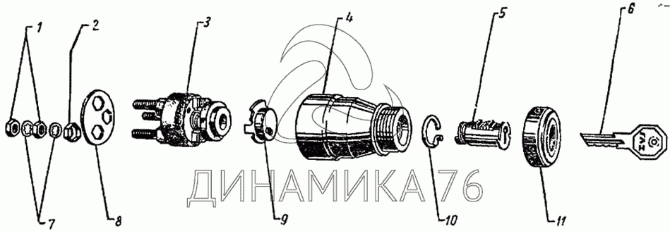 Перечень комплектующих от Замок зажигания на ГАЗ-51 (63, 63А)