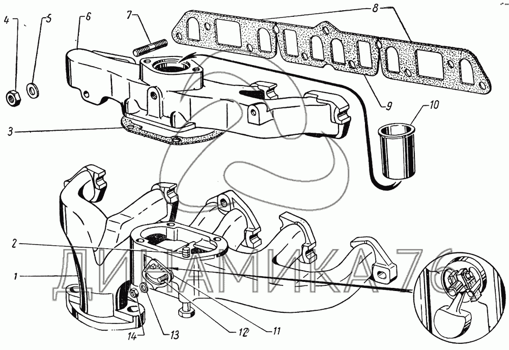 Прокладка между впускной трубой и выпускным коллектором