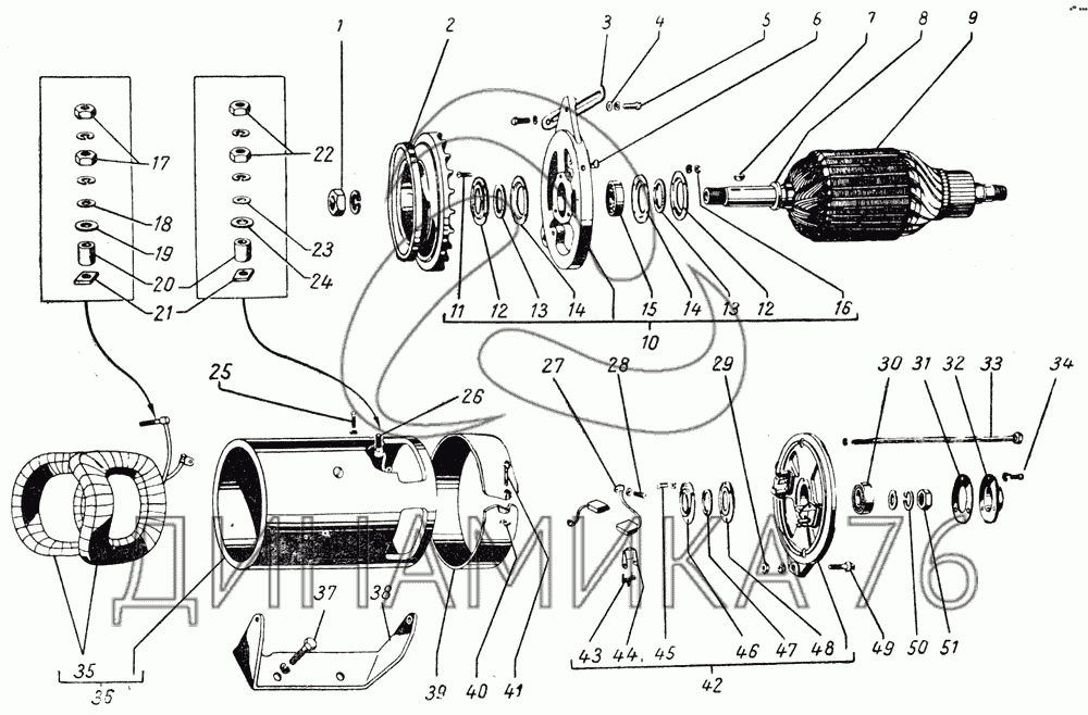 Перечень комплектующих от Генератор на ГАЗ-51 (63, 93)