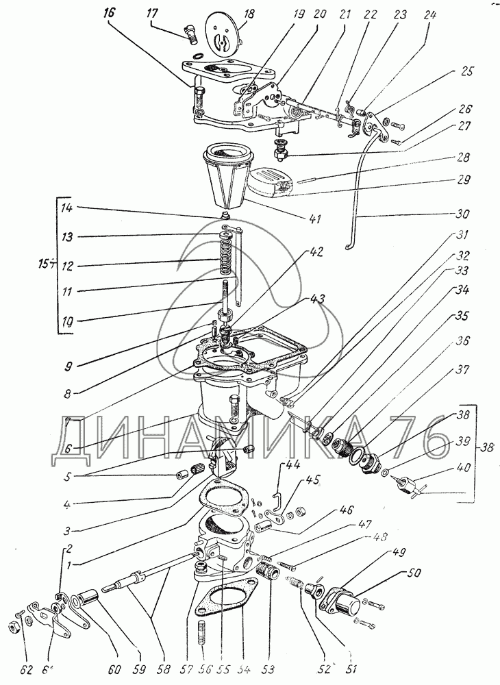 Схемы запчастей предназначены для справочных целей! Мы продаем не все запчасти от Карбюратор КГ22Г на ГАЗ-51 (63, 93), представленные в этом списке.