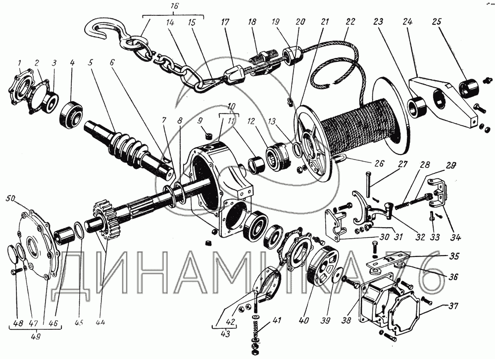 Перечень комплектующих от Лебедка на ГАЗ-51 (63, 93)