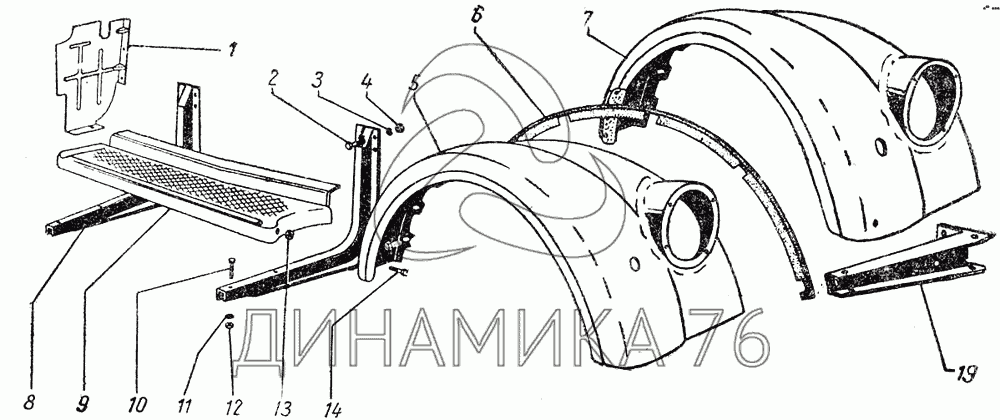 Перечень комплектующих от Переднее крыло, подножка на ГАЗ-51 (63, 93)
