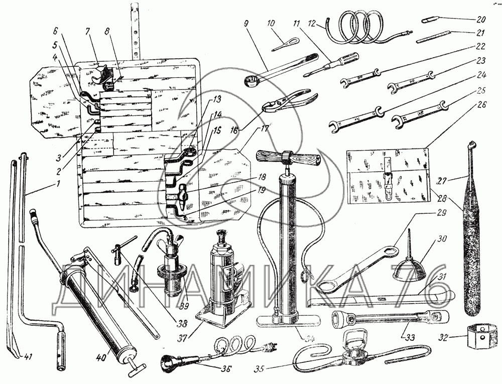 Перечень комплектующих от Шоферский инструмент на ГАЗ-51 (63, 93)